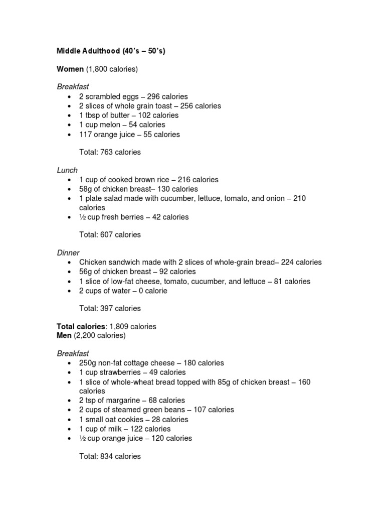 Diet Calories Chart